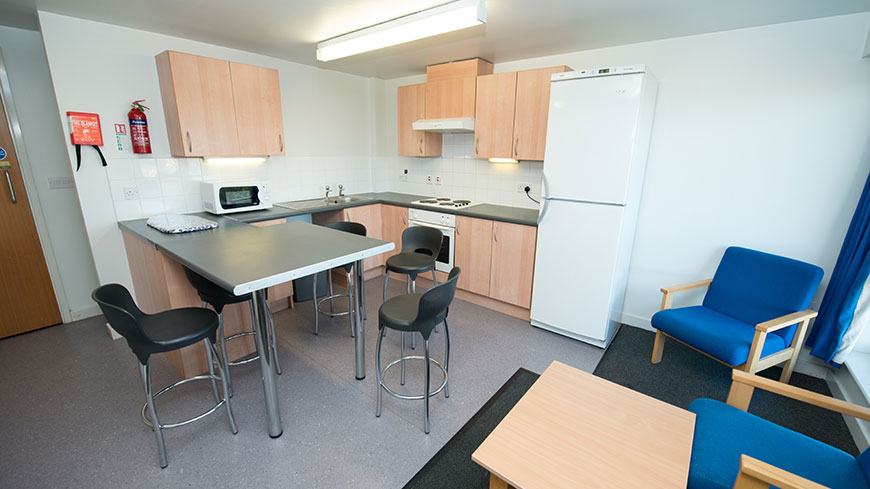 Within each flat there is a kitchen with a cooker, fridge, freezer and a microwave. The lounge and dining area has a breakfast bar and stools, easy chairs and sofas with a coffee table, plus a notice board and television point.